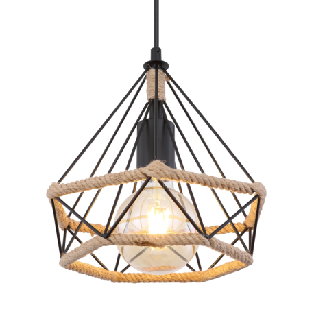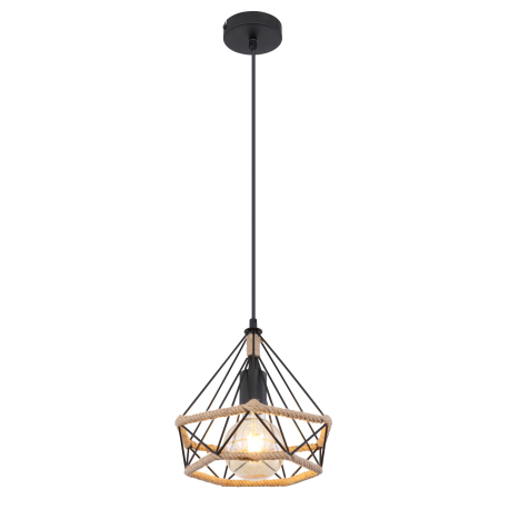 GL-69029H2 Závěsné svítidlo, kov černý matný, konopné lano hnědé, Ø25cm, V:150cm, bez žárovky 1xE27, max. 40W 230V -