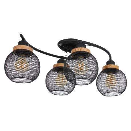 GL-15663-4D Stropní svítidlo, kov černý, hnědé dřevo, Dx?xV: 60x35x22cm, bez žárovek 4xE27, max. 60W 230V -