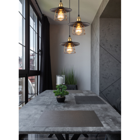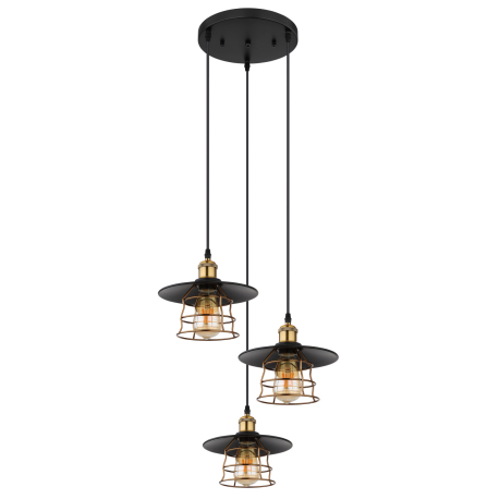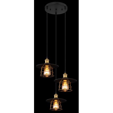 GL-15086-3BH Závěsné svítidlo, kov černý, mosaz, černý PVC kabel, Ø:33cm, V:155cm, bez žárovek 3xE27, max. 60W 230V -
