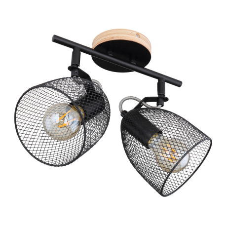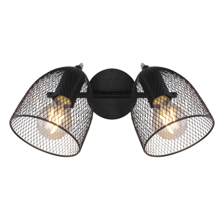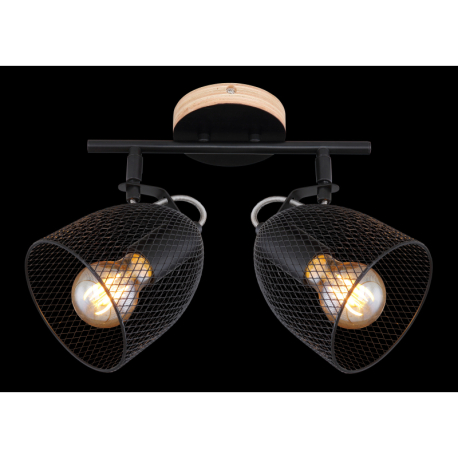 GL-54034-2 Nástěnné svítidlo, dřevo hnědé a černé, kov černý, mřížované kovové stínítko, Dx?xV: 27x13x26cm, bez žárovek 2xE27, max. 60W 230V -