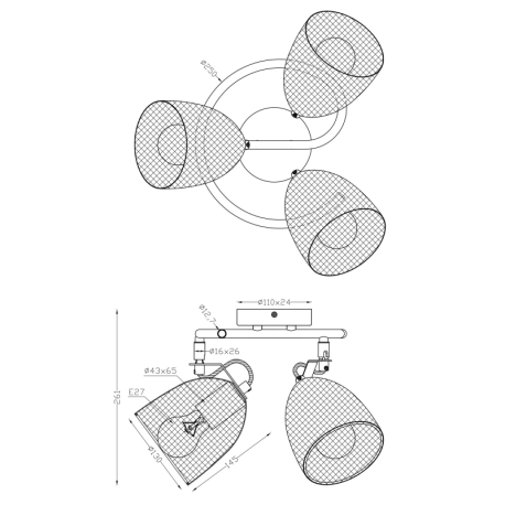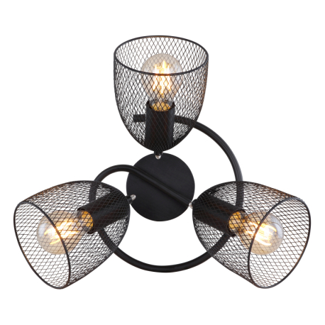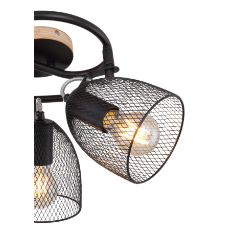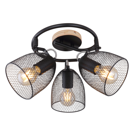 GL-54034-3  Stropní svítidlo, dřevo hnědé a černé, kov černý, mřížované kovové stínítko, Ø25cm, V:26cm, bez žárovek 3xE27, max. 60W 230V -