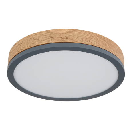 GL-416080WD1R Stropní svítidlo, kov grafit, MDF vzhled dřeva, plast bílý, Ø:30cm, V:9cm, včetně LED 12W 230V, 1600lm zdroj, 950lm výstup, 3000K -