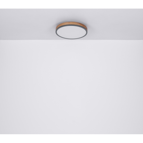 GL-416080WD2R Stropní svítidlo, kov grafit, MDF vzhled dřeva, plast bílý, Ø:45cm, V:9cm, včetně LED 24W 230V, 3200lm zdroj, 1800lm výstup, 3000K -