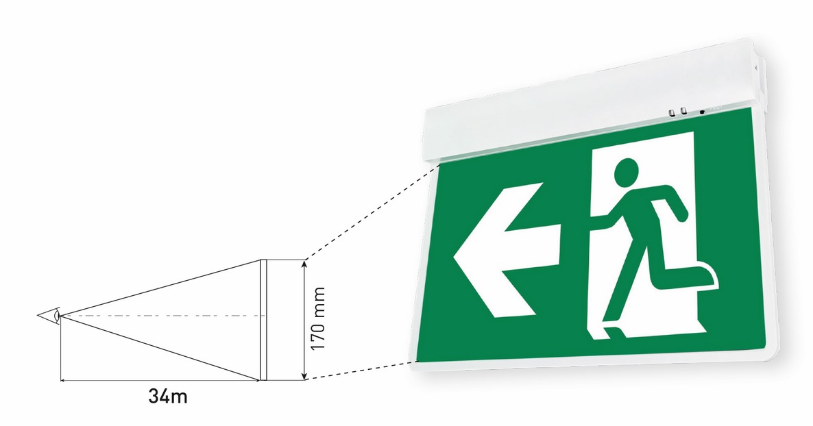 Die Leuchte ist werkseitig mit zwei Piktogrammen mit einem Pfeil nach links und rechts ausgestattet. Beim Kauf von