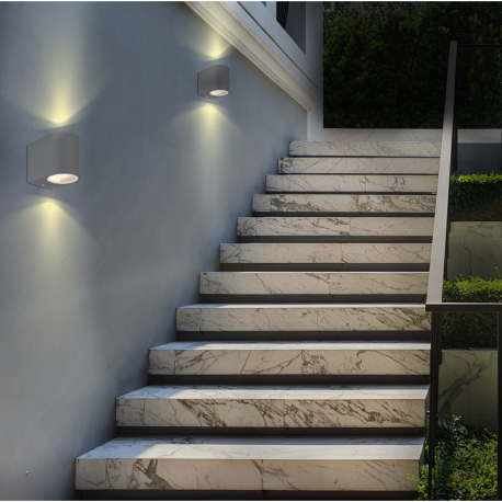 Die Wandleuchten Veronika sind aus anthrazitfarbenem Aluminiumguss und Glas gefertigt. Sie haben Schutzart IP 44 |