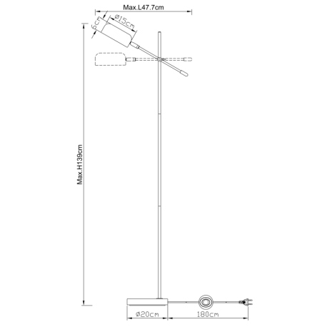 GL-24099SC Stojanové svítidlo, kov, chrom, plast satinovaný, nastavitelná jedním kloubem, kabel 1,8m, vypínač, Dx?xV: 48x20x139cm, bez žárovky 1xE14, max. 25W 230V -