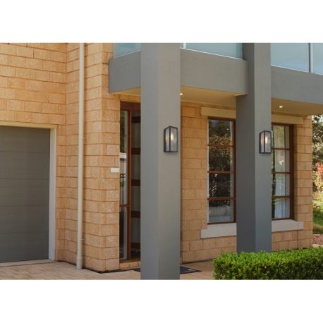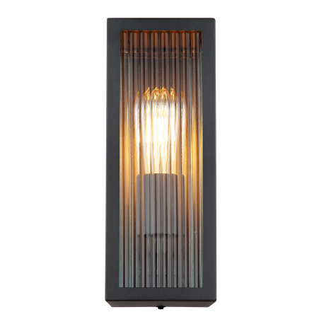 GL-31980 Venkovní svítidlo kov černý matný, čiré sklo, satinované, směr světla nahoru, IP44, sklo drážkované, ?xVxH:120x320x140mm, bez žárovky 1xE27 60W 230V -