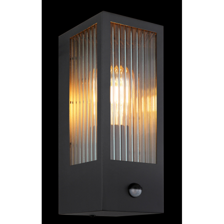 GL-31980S Venkovní svítidlo kov černý matný, čiré sklo, satinované, směr světla nahoru, včetně senzoru, IP44, sklo drážkované, ?xVxH:120x320x154mm, bez žárovky 1xE27 60W 230V -
