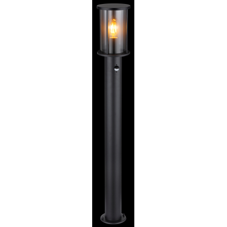 GL-31363S Venkovní sbítidlo nerezová ocel černá matná, sklo kouřové barvy, kovové tyče černé matné, včetně senzoru, IP54, Ø:143mm, V:1000mm, bez žárovky 1xE27 60W 230V -
