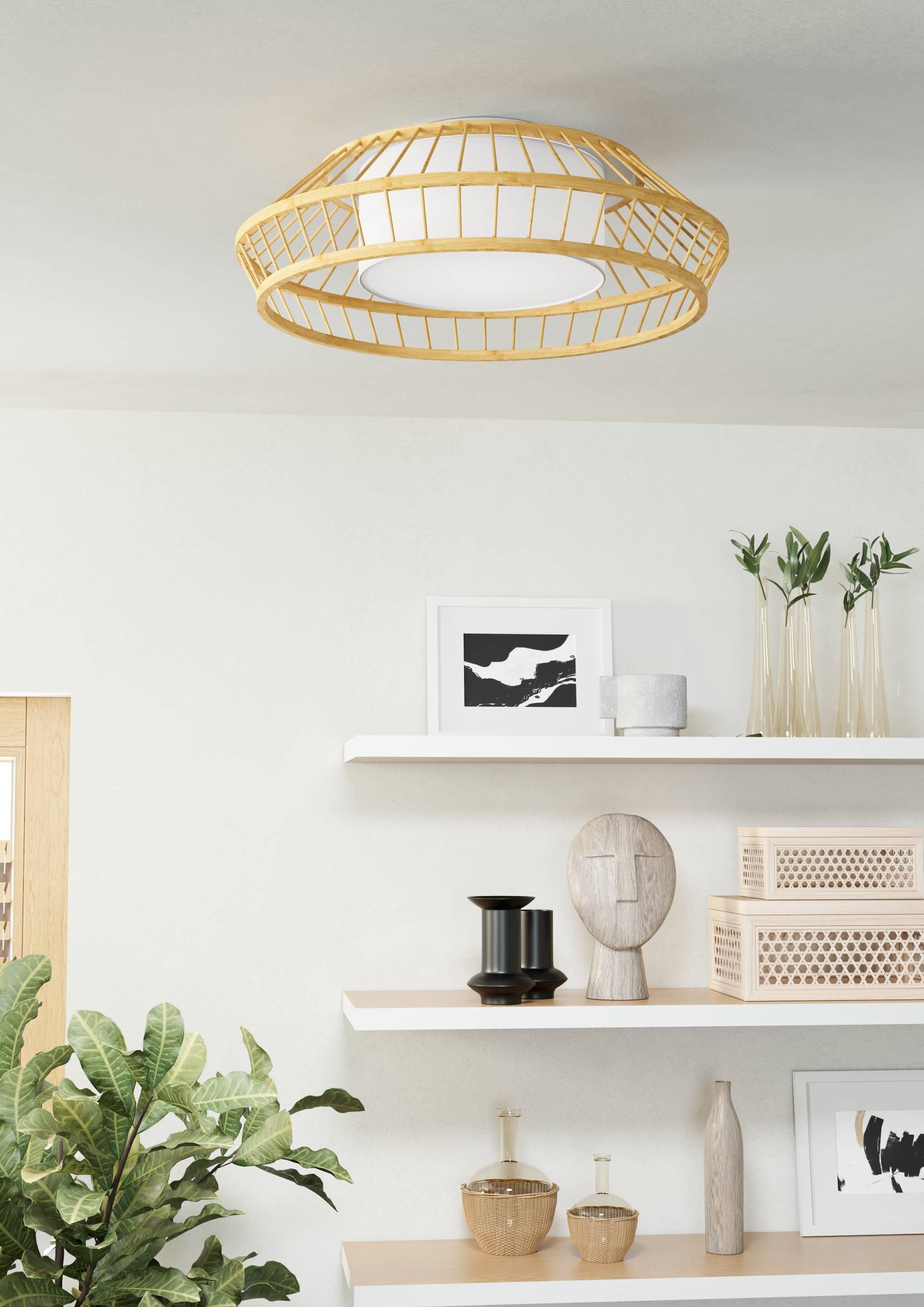 Egl-900841 LED-DL WEISS/BAMBUS NATUR 'YUKU-Z' -