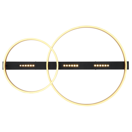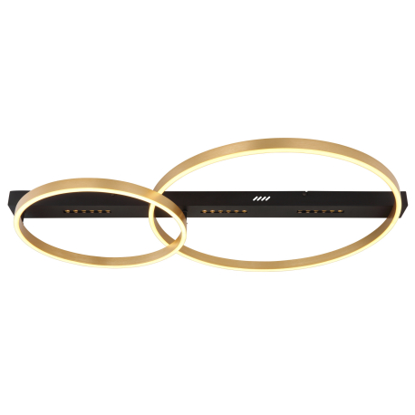 GL-48461-54R Stropní svítidlo kov černý matný, kov zlaté barvy, plast bílý, přepínání funkcí nástěnným vypínačem, paměťová funkce, Dx?xV:930x585x102mm, 1 kruh Ø:39,5cm, 2 kruh Ø:58,5cm, včetně LED 54W 230, 5706lm zdroj, 2560lm výstup, 3000K -