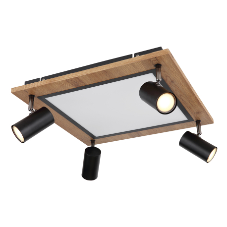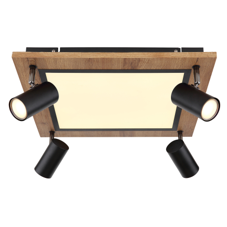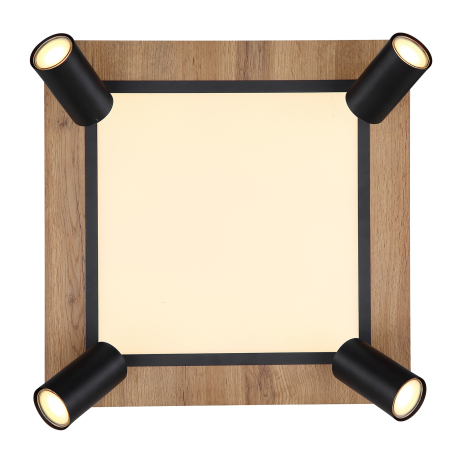 GL-67306D2 Stropní svítidlo kov černý, MDF, imitace tmavého dřeva, plast bílý, přepínání funkcí nástěnným vypínačem, paměť, přepínání: LED/GU10/obojí dohromady, 450x450x130mm, LED 24W 230V, 3000lm zdroj, 1900lm výstup, 3000K, bez žárovek 4xGU10 LED 5W 230V -