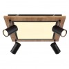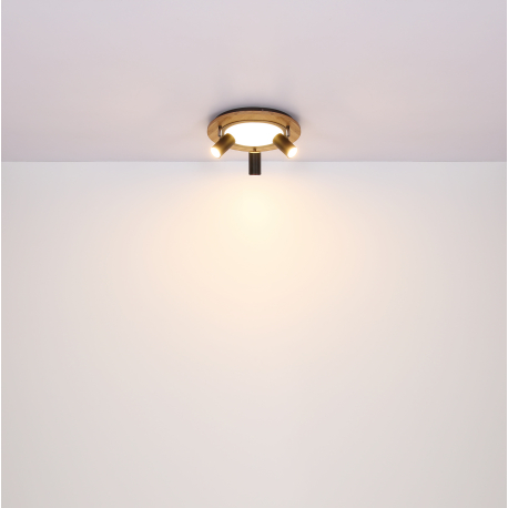 Deckenleuchten aus Metall in eleganter mattschwarzer Farbe, Sperrholz in Holzimitation und Kunststoff in Opalfarbe. Die zentrale Beleuchtung besteht aus einer integrierten LED-Quelle, die nicht ausgetauscht werden kann, und zusätzlichen Spots mit GU10-Gewindelampen, die austauschbar sind. Es wird empfohlen, nur LED-Lampen zu verwenden. Die Lampen verfügen zudem über eine Memory-Funktion der letzten Einstellung und über den Wandschalter lässt sich die Beleuchtung in drei Stufen regulieren. |