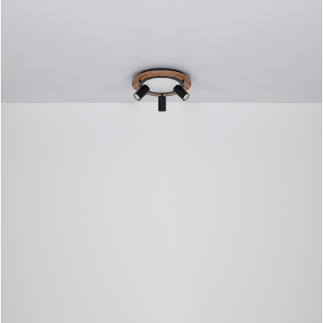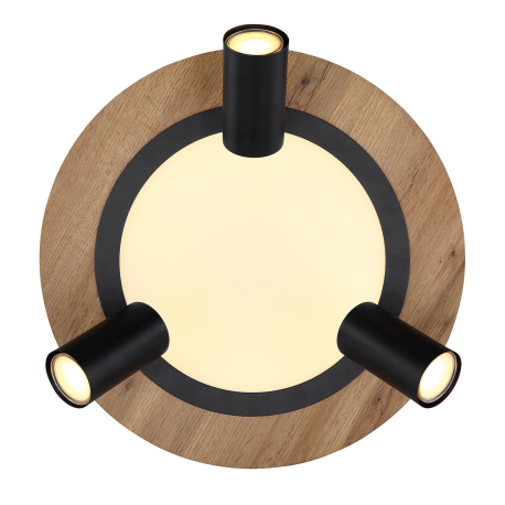GL-67307D Stropní svítidlo kov černý, MDF, imitace tmavého dřeva, plast bílý, přepínání funkcí nástěnným vypínačem, paměť, přepínání: LED/GU10/obojí dohromady, Ø:400mm, V:180mm, LED 15W 230V, 1900lm zdroj, 1300lm výstup, 3000K, bez žárovek 3xGU10 LED 5W 230V -