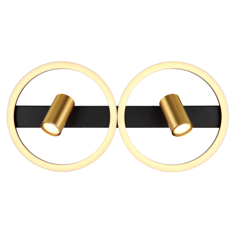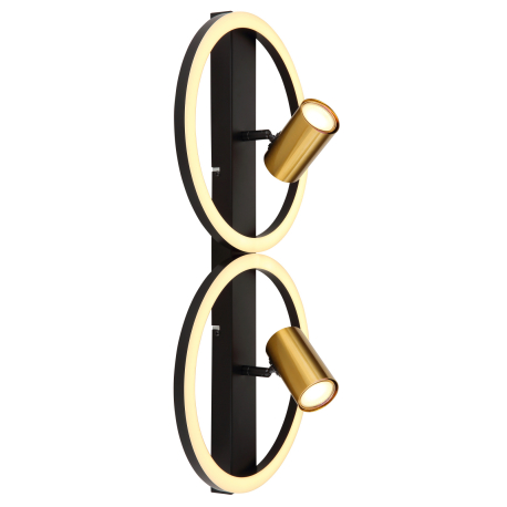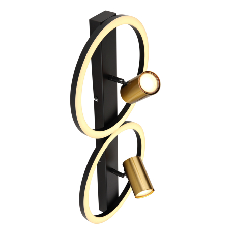 GL-57033-2 Nástěnné svítidlo kov černý matný, kov mosaz matná, plast bílý, Dx?xV:600x300x155mm, včetně LED 24W 230V, 2850lm zdroj, 1400lm výstup, 3000K, bez žárovek 2xGU10 LED 5W -