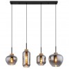 GL-15549-4H Závěsné svítidlo kov černý matný, sklo kouřové barvy, konopí přírodní barva, kabel PVC černý, 4 různé tvary skla, Dx?xV:960x230x1200mm, Ø:stínítka: 18,5cm, 12cm, 16cm, 23cm, bez žárovek 4xE27 40W, 230V -