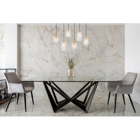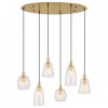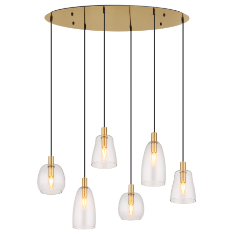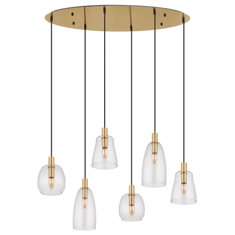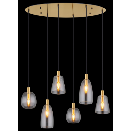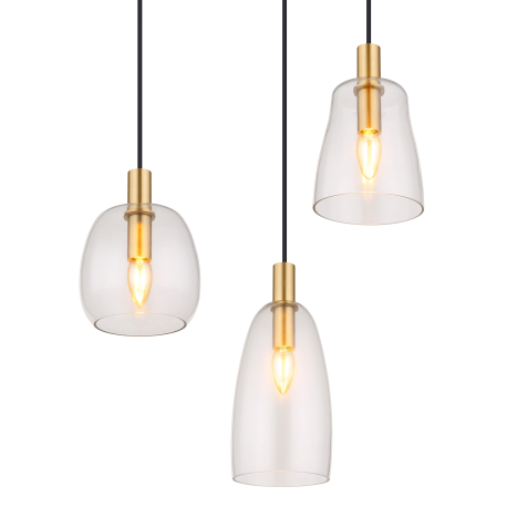 Hängelampen geeignet für Küchen, Esszimmer, aber auch Wohnzimmer. Sie bestehen aus Aluminium und messingfarbenem Metall, die Lampenschirme bestehen aus klarem Glas.