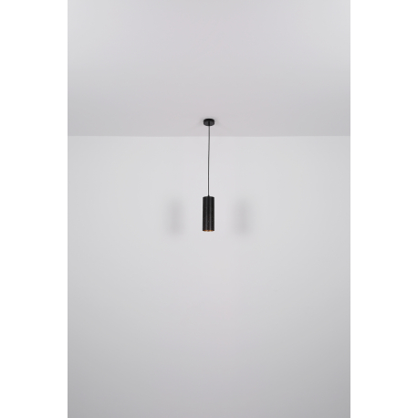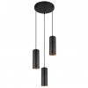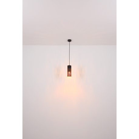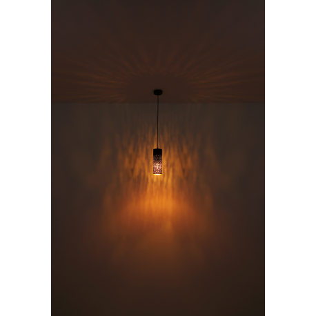 Moderne Kronleuchter eignen sich für die Küche oder das Esszimmer über dem Esstisch oder der Kücheninsel, aber auch für das Wohnzimmer. Sie bestehen aus Metall in einem eleganten Mattschwarz- und Goldton, die Lampenschirme sind an einem Textilkabel aufgehängt. Der Schirm ist perforiert, was bei Beleuchtung sehr effektvoll aussieht.