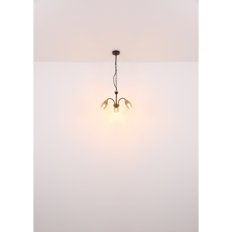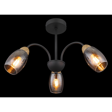 GL-60297-3D Stropní svítidlo kov černý matný, sklo kouřové, kov imitace dřeva, Ø:470mm, V:290mm, bez žárovek 3xE14 25W 230V -