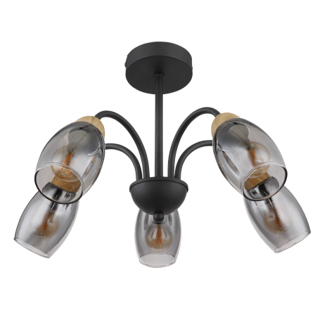 GL-60297-5D Stropní svítidlo kov černý matný, sklo kouřové, kov imitace dřeva, Ø:470mm, V:290mm, bez žárovek 5xE14 25W 230V -