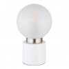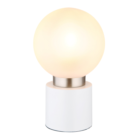 GL-21003WN Stolní lampa, kov bílý matný, nikl, sklo bílé, satinované, kolébkový vypínač na kabelu, Ø:150mm, V:245mm, délka kabelu 1500mm, bez žárovky 1xE14, max. 25W 230V -