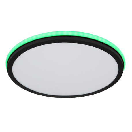 GL-41391-40R Stropní svítidlo kov černý matný, bílá, akryl bílý, stmívatelné, několik úrovní přes nástěnný spínač, RGB duhový efekt, paměťová funkce, dálkové ovládání, Ø:450mm V:70mm, LED 40W+5W RGB 230V, 425-4250lm zdroj, 200-2000lm výstup, CCT2700-6500K -
