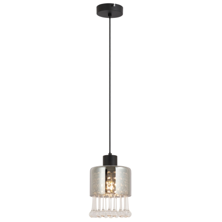 GL-15884H Závěsné svítidlo, kov černý matný, sklo kouřové, skleněné kapky průhledné, akrylové křišťály průhledné, kabel PVC černý, Ø:150mm, V:1200mm, bez žárovky 1xE27, max. 60W 230V -