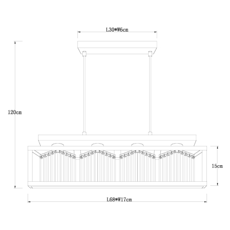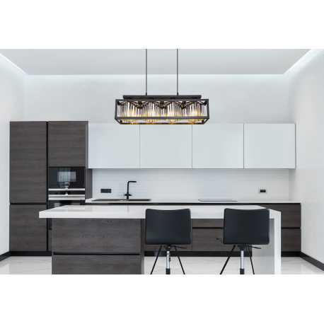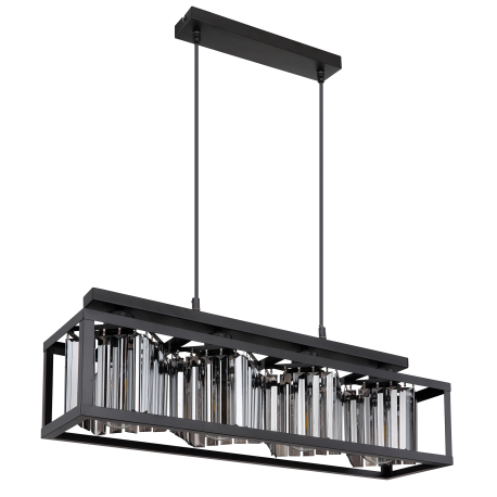 GL-15697-4H Závěsné svítidlo kov černý matný, skleněné krystaly kouřové barvy, možnost nastavení výšky, Dx?xV:680x170x1200mm, bez žárovek 4x E27 40W 230V -