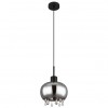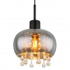 GL-15839H  Závěsné svítidlo, kov černý matný, sklo kouřové, skleněné křišťály průhledné, textilní kabel černý, možnost nastavení výšky, Ø:210mm, V:1200mm, bez žárovky 1xE27 LED, max. 9W 230V -