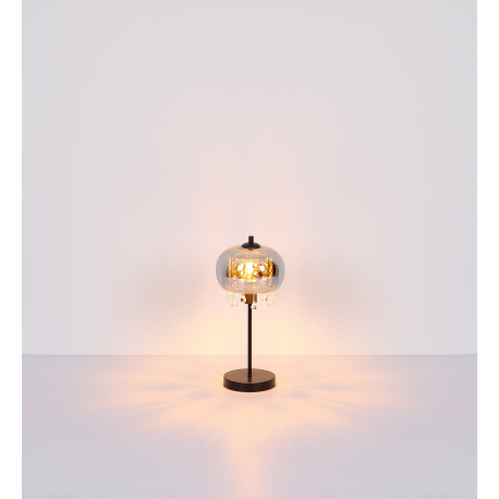 GL-15839H1 Závěsné svítidlo, kov černý matný, sklo kouřové, skleněné křišťály průhledné, textilní kabel černý, možnost nastavení výšky, Ø:280mm, V:1200mm, bez žárovky 1xE27 LED, max. 9W 230V -