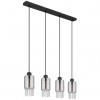 GL-15799-4H Závěsné svítidlo kov černý matný, sklo kouřové, sklo krystaly čiré, kabel PVC černý, Dx?xV:730x100x1200mm, bez žárovek 4xE27 40W 230V -