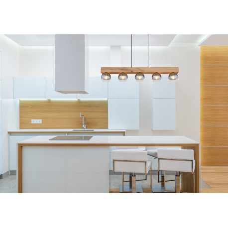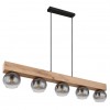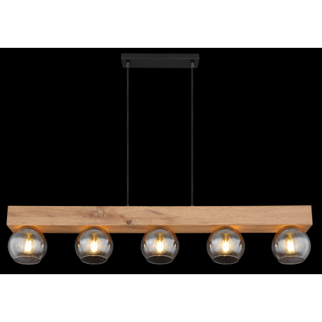 GL-15656-5H Závěsné svítidlo kov černý matný, MDF imitace dřeva, sklo kouřové, čiré, textilní kabel černý, výškově nastavitelné, Dx?xV:1150x150x1200mm, bez žárovek 5x E27 40W 230V -