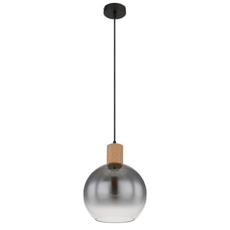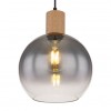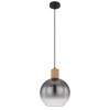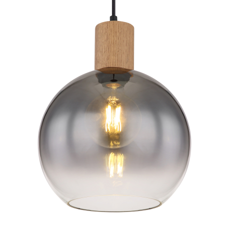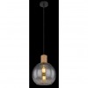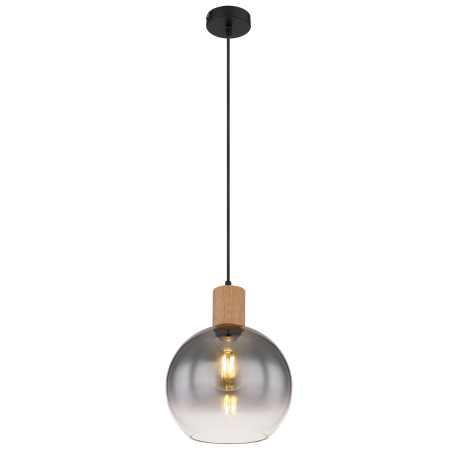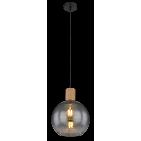 GL-15656H Závěsné svítidlo kov černý matný, MDF, imitace tmavého dřeva, kouřové sklo, textilní kabel černý, možnost nastavení výšky, Ø:250mm, V:1200mm, bez žárovky 1xE27 40W 230V -