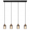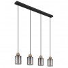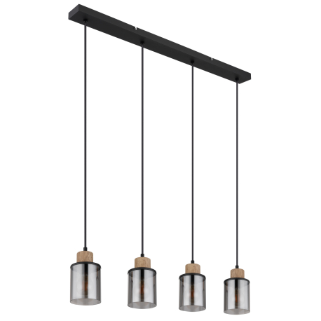 GL-15707-4H  Závěsné svítidlo kov černý matný, dřevo tmavě hnědé, sklo kouřové, kabel PVC černý, Dx?xV:780x100x1200mm, bez žárovek 4xE27 15W 230V -