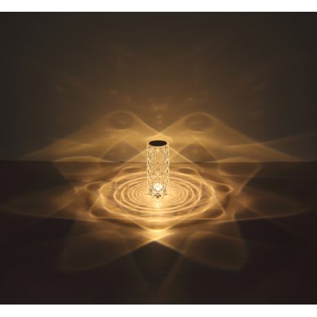 GL-28071 Stolní svítidlo čirý plast s křišťálovým efektem, dotykové zapnutí/vypnutí, stmívatelné, plynulý dotykový stmívač, bez adaptéru, baterie 800mAh 3,7 V, Ø:90mm, V:210mm, délka kabelu 800mm, LED 1,5W 5V, výstup 50lm, CCT 2700-6500K -