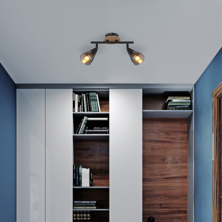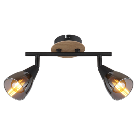 GL-54311-2 Nástěnné svítidlo, bodové, kov černý matný, dřevo hnědé, sklo kouřové, Dx?xV:255x100x195mm, bez žárovek 2xE14,max. 25W 230V -