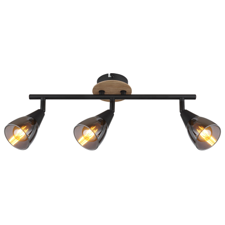 GL-54311-3 Stropní svítidlo, bodové, kov černý matný, dřevo hnědé, sklo kouřové, Dx?xV:420x100x195mm, bez žárovek 3xE14, max. 25W 230V -