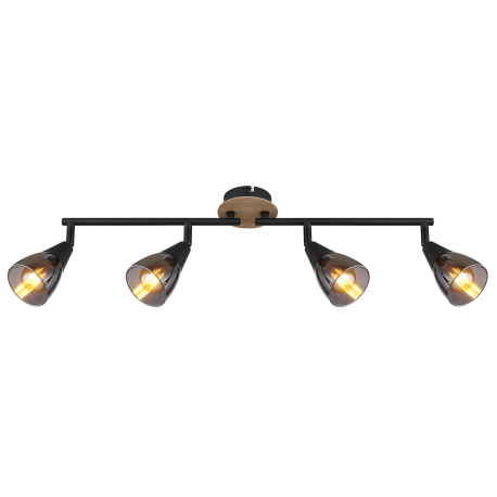GL-54311-4 Stropní svítidlo, bodové, kov černý matný, dřevo hnědé, sklo kouřové, nastavitelné, Dx?xV:600x100x190mm, bez žárovek 4xE14,max. 25W 230V -