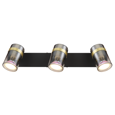 GL-57916-3 Stropní svítidlo, bodové, kov černý matný, kouřové sklo s přechodem do průhledného skla, kov mosaz, Dx?xV:410x60x125mm, bez žárovek 3xGU10,max. 8W 230V -