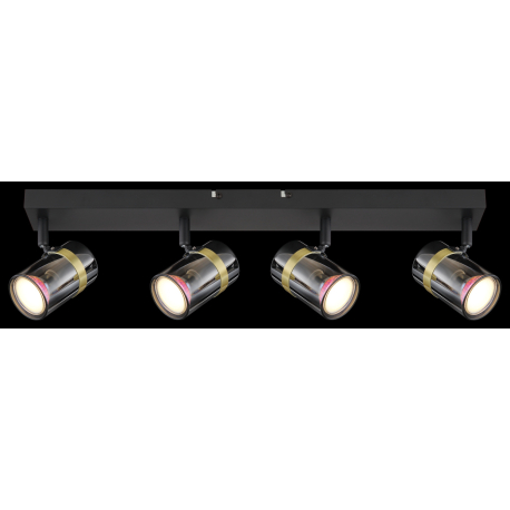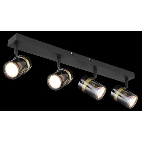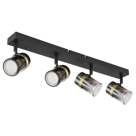 GL-57916-4 Stropní svítidlo, bodové, kov černý matný, kouřové sklo s přechodem do průhledného skla, mosaz, Dx?xV:560x60x125mm, bez žárovek 4xGU10,max. 8W 230V -