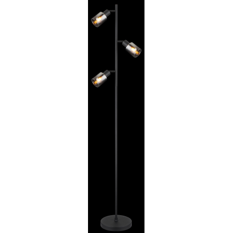 GL-54308S Stojací svítidlo, kov černý matný, kouřové sklo s přechodem do průhledného skla, kabel PVC černý, nožní spínač v kabelu, Ø:230mm, V:1540mm, délka kabelu 1800mm, bez žárovek 3xE14,max. 40W 230V -