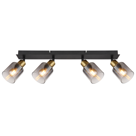 GL-54310-4 Stropní svítidlo, kov černý matný, kov zlatý matný, sklo kouřové, průhledné, Dx?xV:550x80x182mm, bez žárovek 4xE14,max. 40W 230V -