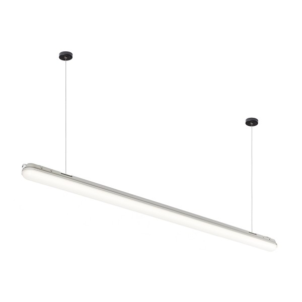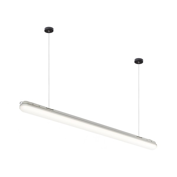 Industrielle Langfeldleuchte für Deckenmontage oder Abhängung mit Set G13672. Lieferung ohne Aufhängeset und Netzkabel.