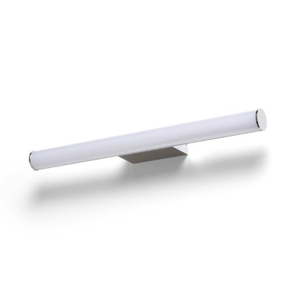 Wandmontierte LED-Röhre für Badezimmer auf rechteckigem Sockel. Die Lichtfarbe kann über einen Schalter im Inneren des Sockels auf 3000K oder 4000K eingestellt werden. |