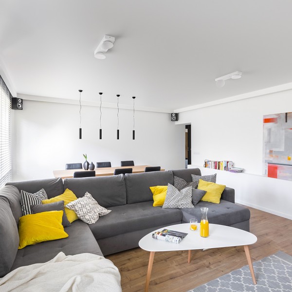Moderne LED-Lampe mit schalenförmigen Reflektoren. Sie können den Reflektor dorthin neigen, wo Sie strahlen möchten. |