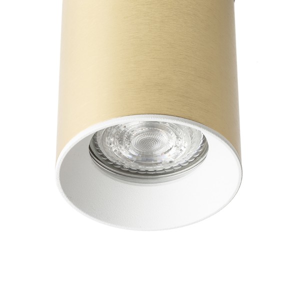 Neigbare zylindrische Lampe, geeignet für den Einsatz von LED-Leuchtmitteln mit GU10-Sockel. Die Leuchte wird mit einem Zierring in der Farbe gebürstetem Messing geliefert. Es besteht die Möglichkeit, einen Zierring in Weiß oder Schwarz zu erwerben. |