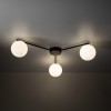 Moderne Deckenleuchten aus Metall, Glas und Kunststoff in elegantem Schwarz. Der Metallfuß hat Arme, an denen Glaskugeln aufgehängt sind. |