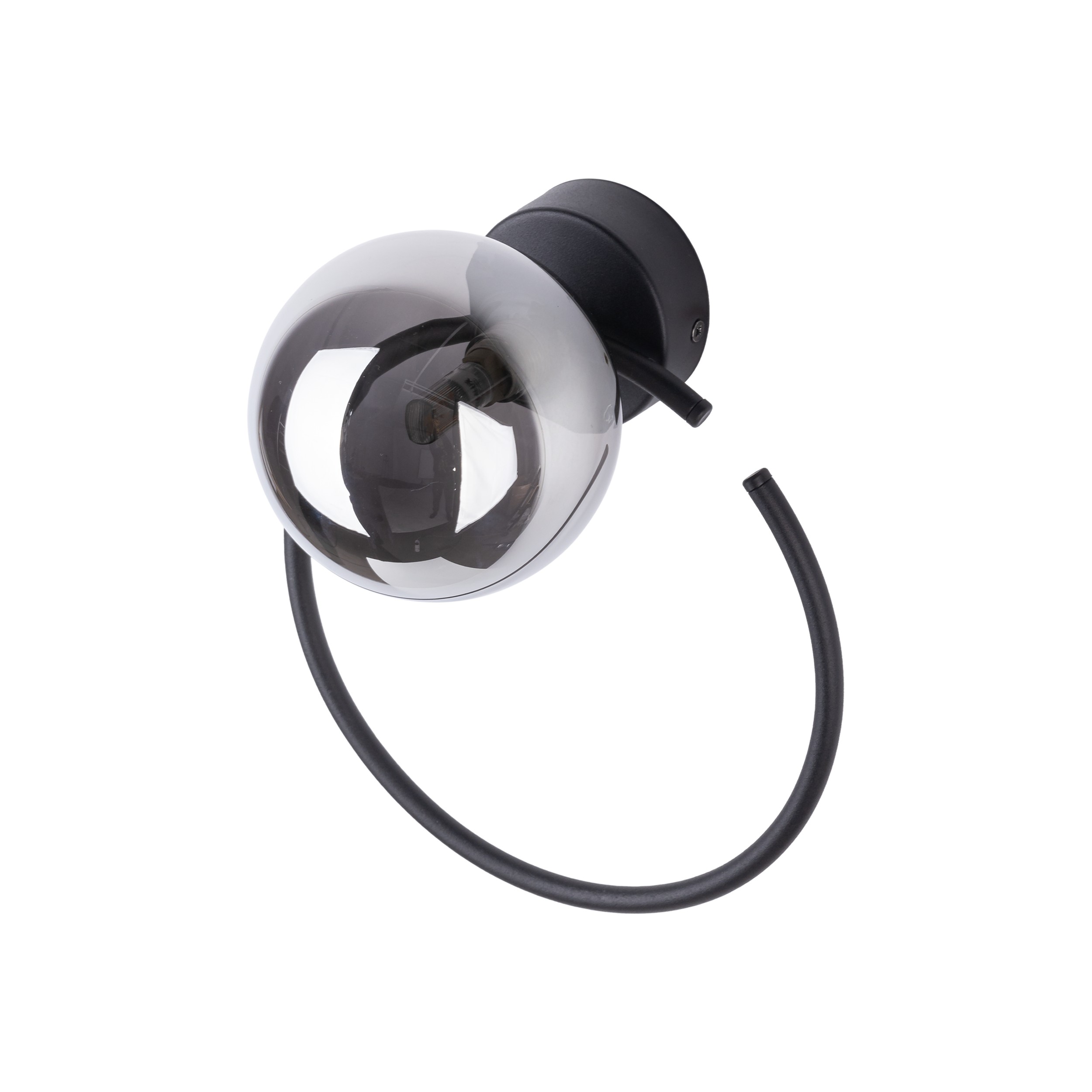 Interessante Kronleuchter aus Metall, Kunststoff und Glas. Es hat ein luxuriöses Gefühl. Sie werden ein interessantes Element in Ihrem Interieur bilden. Auf dem schwarzen Sockel sind schwarze Glaskugeln platziert. |