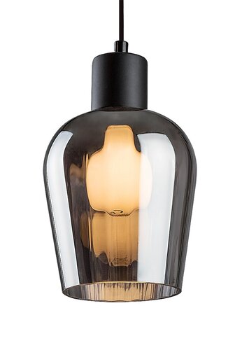 Die elegante Florian-Lampe ist im Vintage-Stil gefertigt. Ein zylindrisch geformter, getönter Glasschirm hängt an einem mattschwarzen Sockel. Mit klassischem E27-Gewinde. |