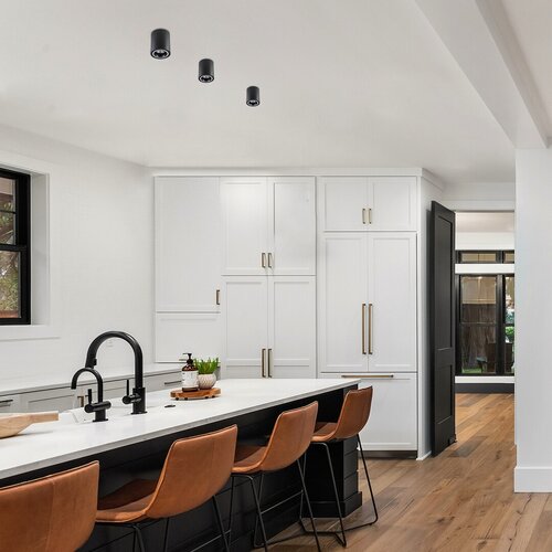 Elegante zylindrische Deckenleuchten, passend für moderne Innenräume. Sie bestehen aus Metall und Acryl. |